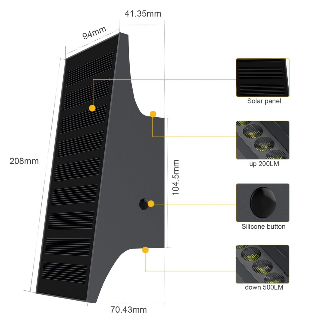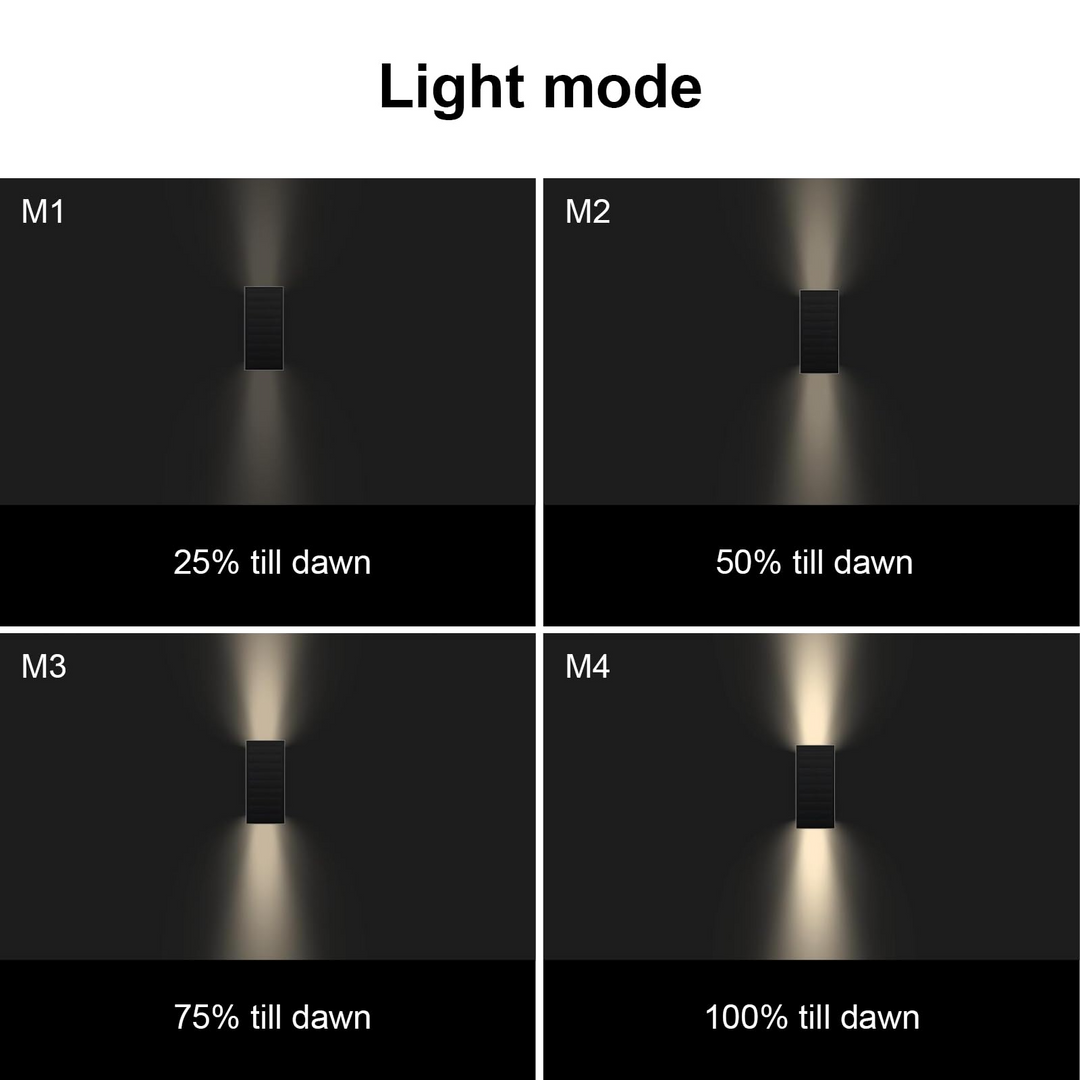 These sleek Dark Grey solar wall lights offer a modern up-and-down glow. Choose from four smart brightness modes for all-night illumination. Built tough with IP65 waterproofing, they're perfect for any outdoor space.